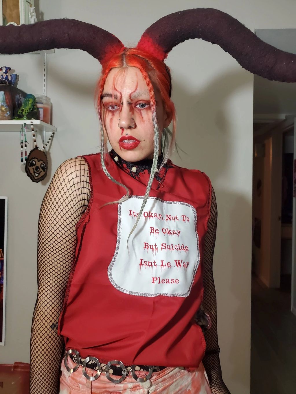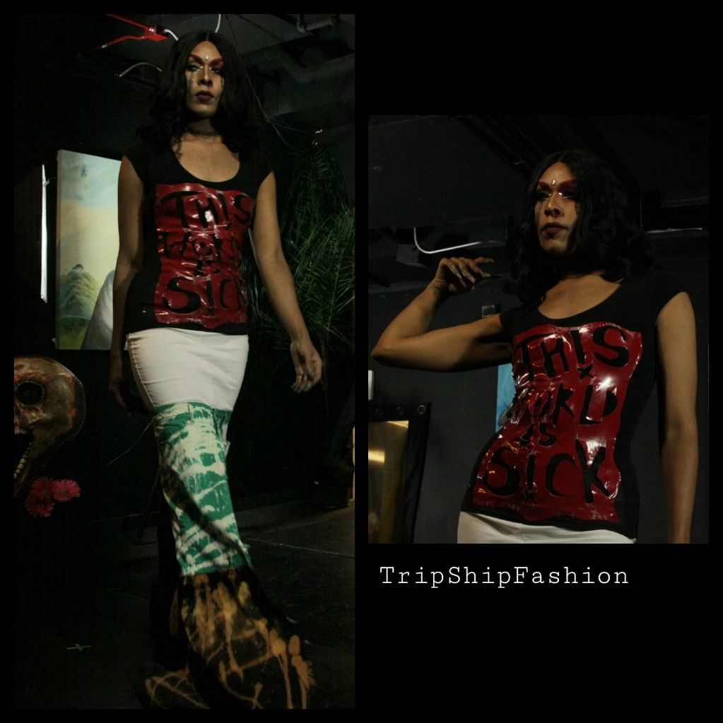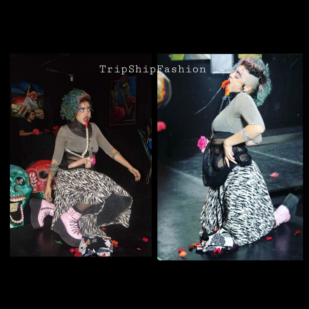 I've been creating clothes & knew my career, my passion was a Fashion Designer at 9 years old. Using just pieces of fabrics, scissors & a hot glue gun was all I needed. A handmade blue dress is my first design at 9 years old, while I was wearing my most recent design of my dreams, in Jan 2019, . "Learn From Your Childhood, But Don't Let It Rule You." Used all my Barbie dolls & Bratz, scalped their heads, placed them onto my face & safety pinned their clothes on my skirt. Giving that illusion that lil TripShip always wanted, to be a real life Bratz/Doll Jester Creature & wear their fuckin fashion, mirt!